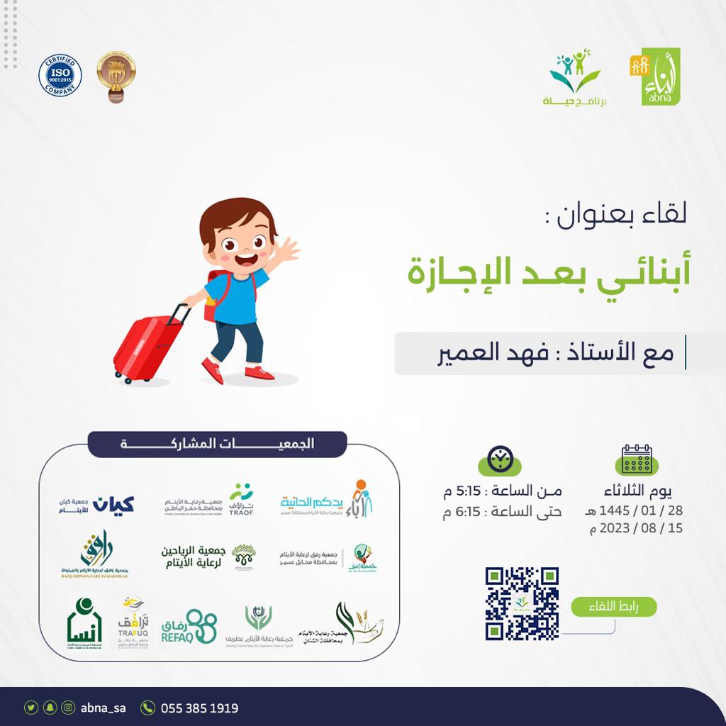 لقاؤنا القادم معكم في برنامج حياة بعنوان: أبنائي بعد الإجازة مع الأستاذ: فهد العمير